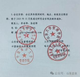 山东省企业管理研究会拟定于2026年1月在威海召开“面向‘十五五’的企业管理创新与高质量发展”学术研讨会暨山东省企业管理研究会2025年年会。本次会议由山东省科协指导,山东省企业管理研究会、山东大学管理学院、中国海洋大学管理学院、哈尔滨工业大学(威海)经济管理学院联合主办。会议将以大会主旨报告、分论坛研讨及专题交流等形式开展,旨在汇聚政产学研用各方智慧,共同探讨“十五五”时期山东企业管理的创新路径与高质量发展对策。