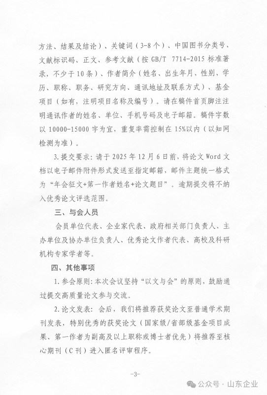 3.提交要求:请于2025年12月6日前,将论文Word文档以电子邮件附件形式发送至指定邮箱,邮件主题统一格式为“年会征文+第一作者姓名+论文题目”。逾期提交将不纳入优秀论文评选范围。